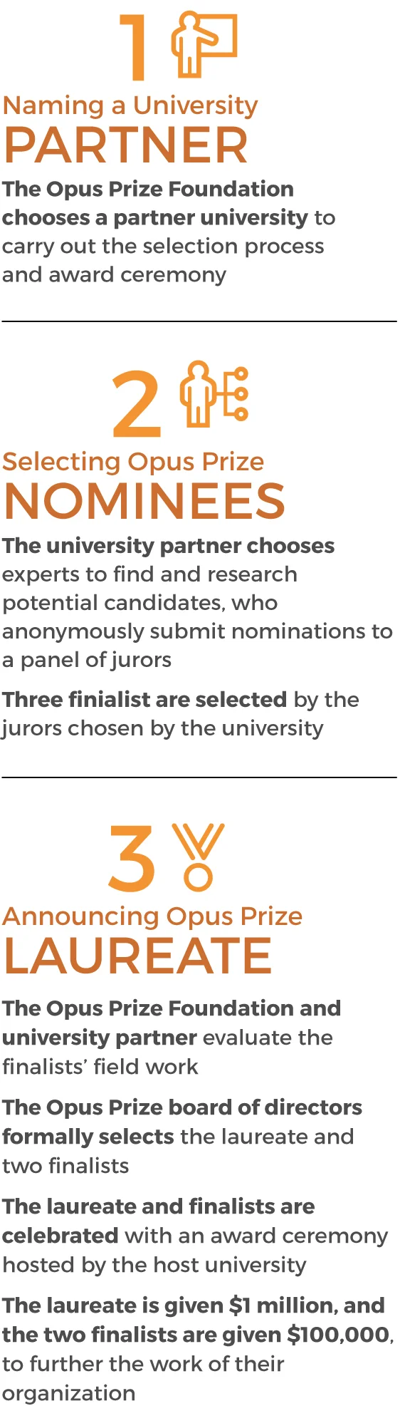 The Opus Prize Foundation uses a confidential process to nominate and select Opus Prize recipients.